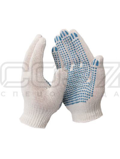 Перчатки трикотажные 3-х нитка, 10 класс вязки, х/б - пвх/точка.